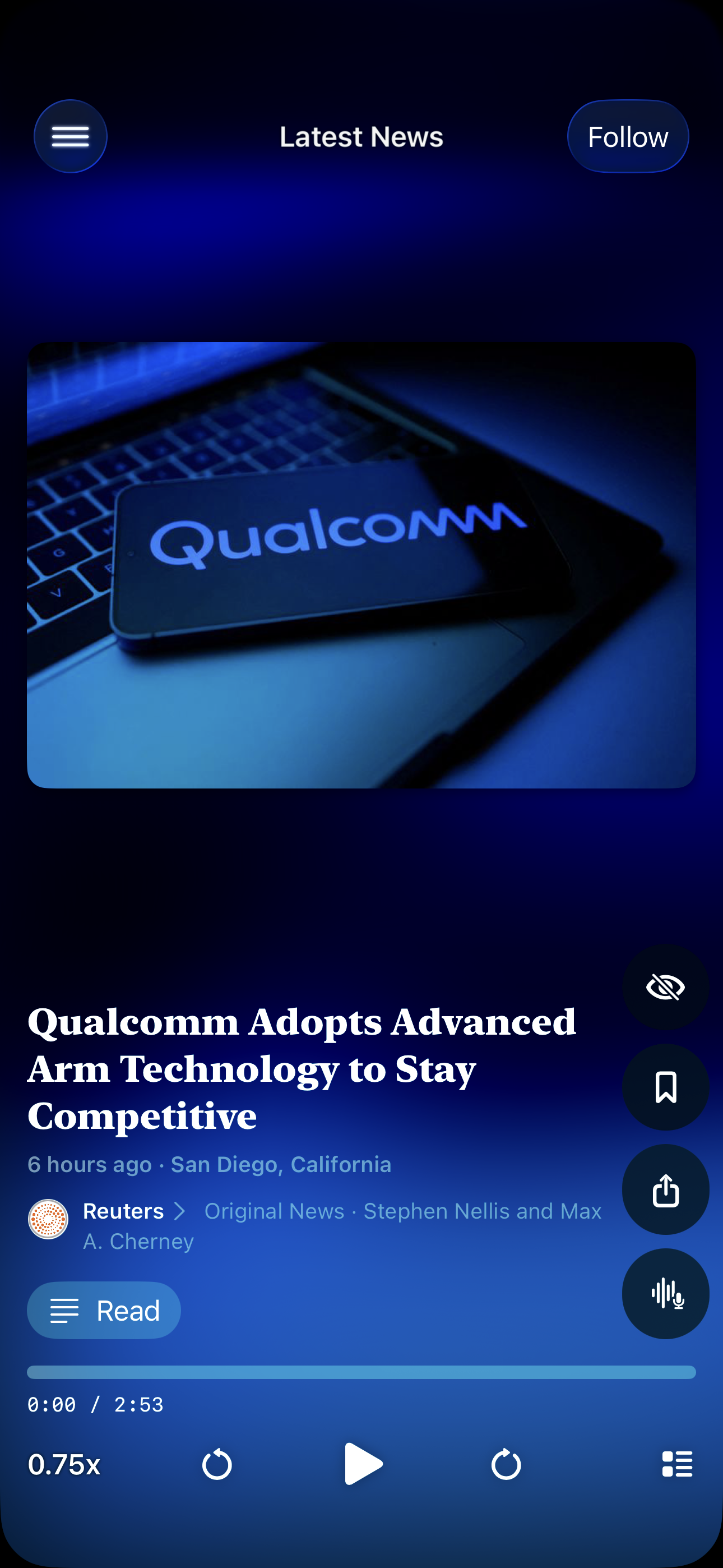 Swipe through a familiar-feeling vertical feed to discover podcasts and news stories chosen for you